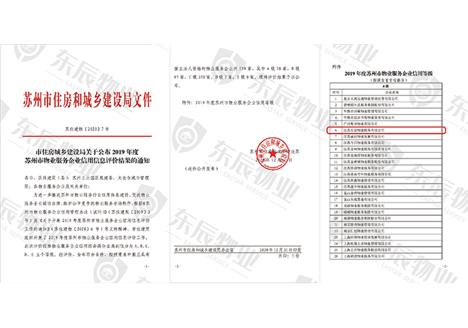 2019年度蘇州市物業(yè)服務企業(yè)信用等級A級