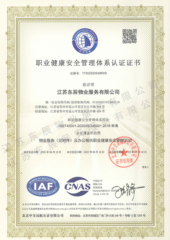 2022-2025年職業(yè)健康安全管理體系認證證書